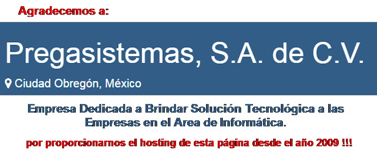 Agradecemos a Pregasistemas por el Hosting de este portal desde el año de 2009 !!!